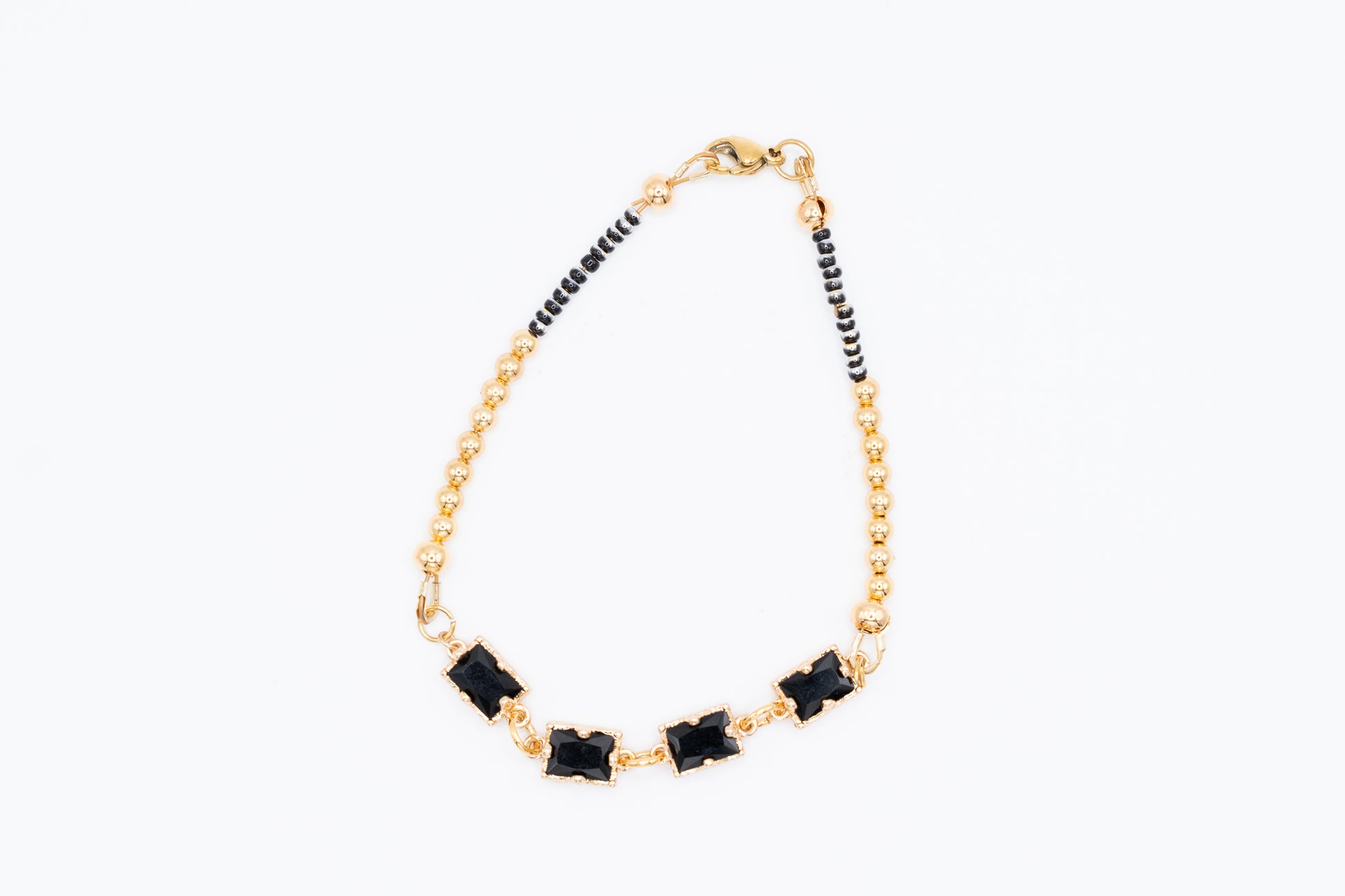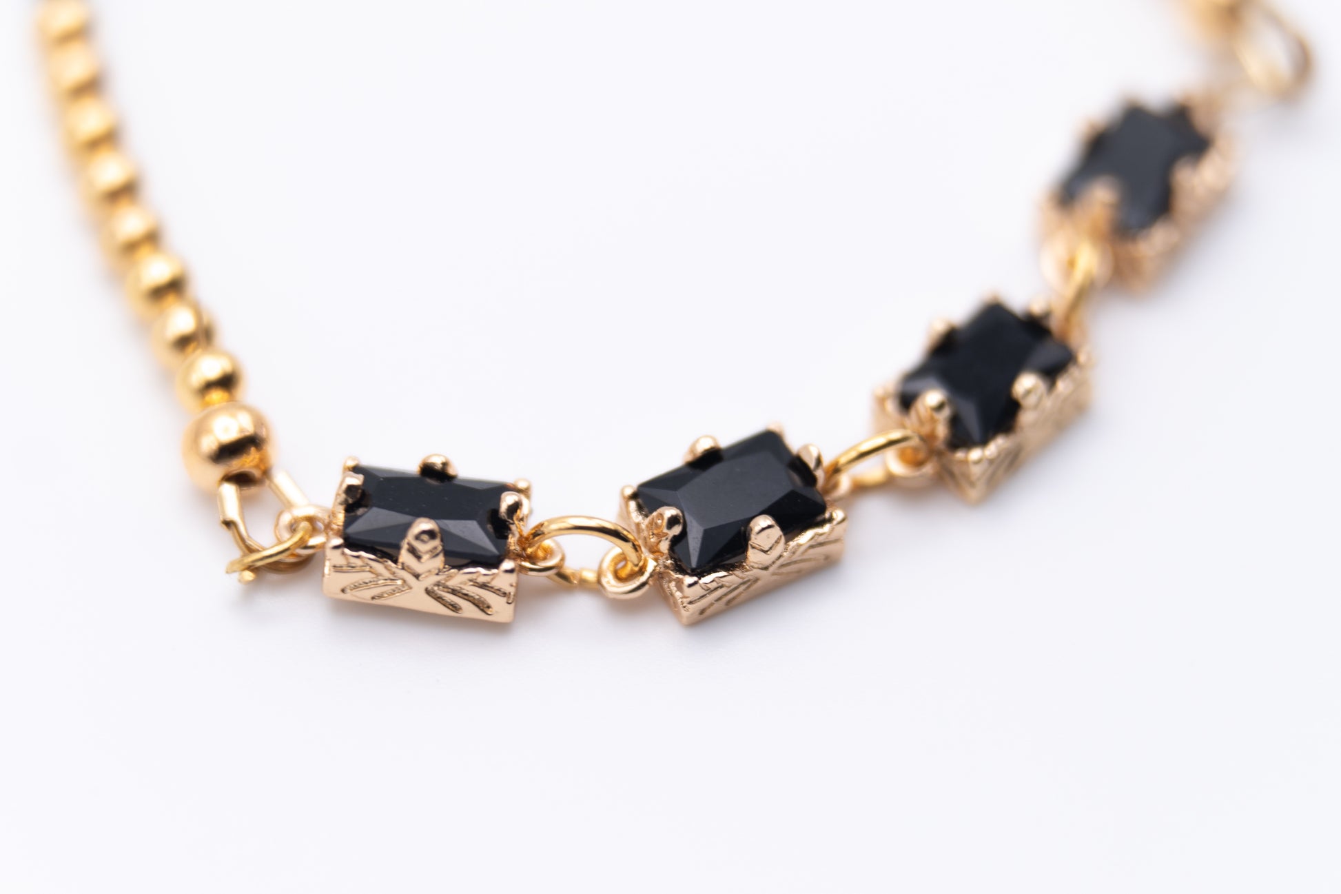 Optez pour une allure sophistiquée avec notre bracelet Thea noir et or. Ce bijou exquis sublimera votre poignet avec élégance.