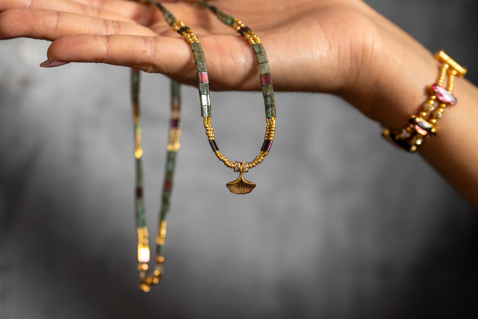Inspiré par l'élégance et la sophistication de l'ancienne reine d'Égypte, ce collier apportera une touche de mystère et de raffinement à votre tenue.