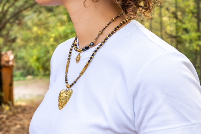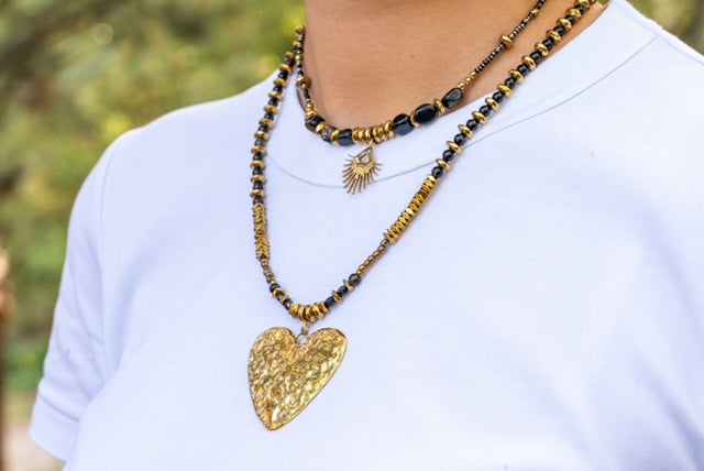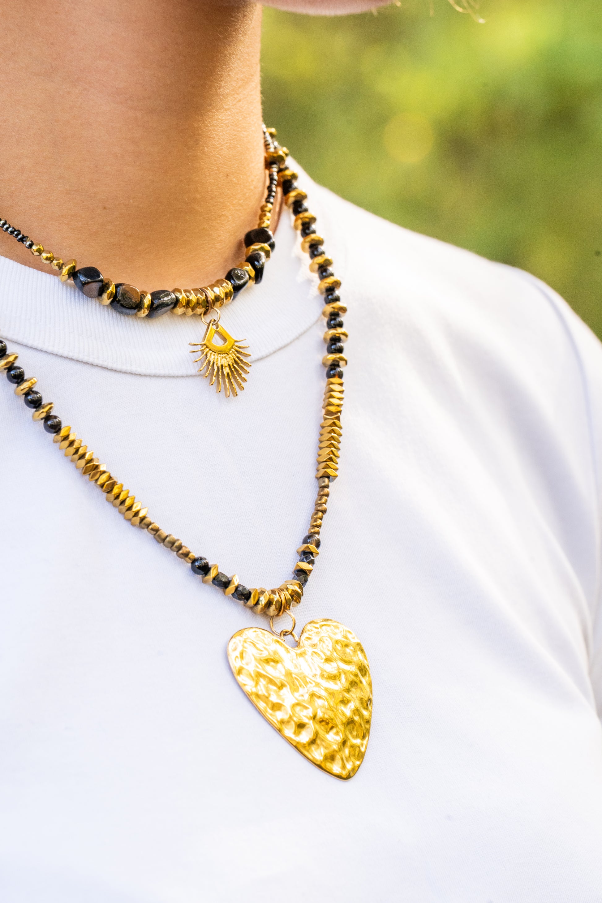 Collier en pierres onyx grade A, en hématites de et en acier inoxydable pour une belle tenue.